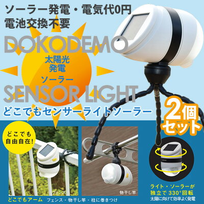 ライトの方向自由自在!大人気のどこでもセンサーライトにソーラータイプが登場! ・ソーラ発電なので電気代0円。