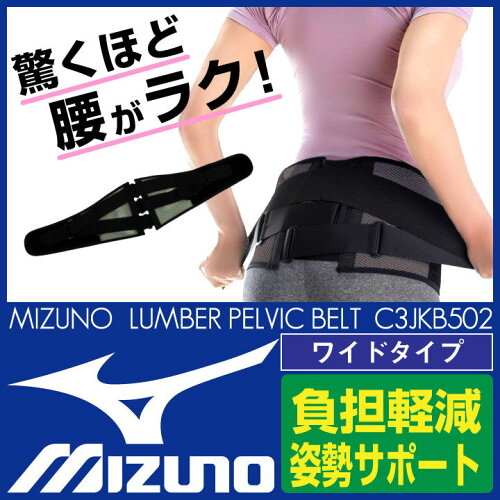 MIZUNO ミズノ 腰部骨盤ベルト ワイドタイプ (補助ベルト付骨盤固定帯) 骨盤バンド 腰用サポーター 男女兼用 mz-c3jkb502